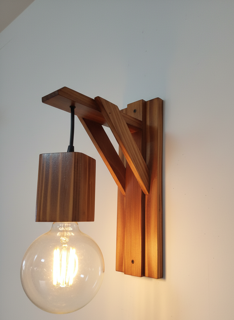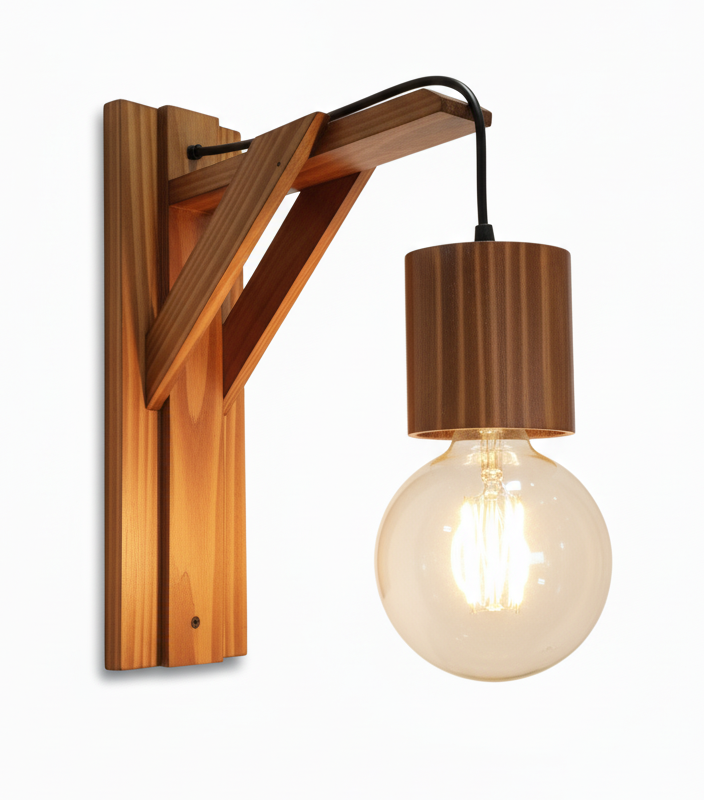 Rustic wooden wall light with an exposed bulb—simple, bold, and beautifully handcrafted.